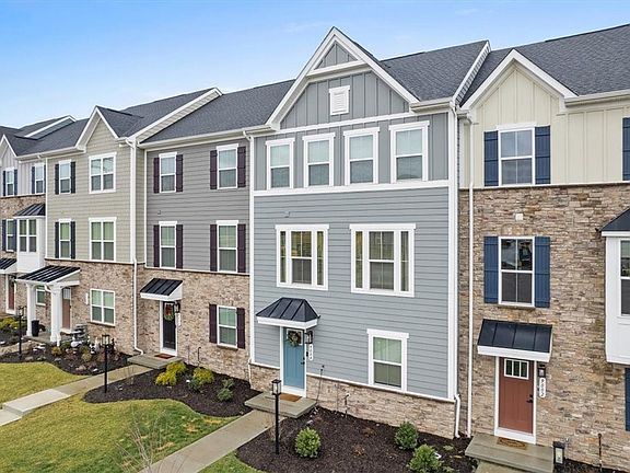 Welcome to contemporary maintenance-free living in Laurel Grove of Pine Twp! This immaculate 2022-built Mendelsohn townhouse shows like the model home, but is ready to move in today - boasting high-end finishes throughout, from the stylish and resilient vinyl plank floors to the craftsman doors, cabinetry, crown molding and custom wainscoting accents. The main floor offers an extra powder room next to the den, making it the perfect home office suite, hangout or playroom. The kitchen is outfitted with a double oven-suite and a sprawling seated island perfect for home chefs who love entertaining guests. The master suite is a haven of tranquility with a generously sized bedroom, walk-in closet, and a luxurious ensuite bathroom featuring dual vanities and a tiled walk-in shower. Step outside to your private balcony, an ideal space for enjoying al fresco dining or morning coffee. Ideally located in Pine-Richland schools, just steps from the to-be-built neighborhood clubhouse!