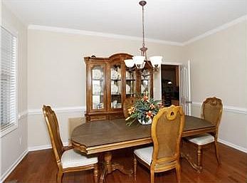 Gorgeous Wake Forest NC home in Dansforth. When you pull up you'll just know it is THE ONE! The curb appeal continues inside with wood flooring in all of the common living areas. Large formal Dining Room with crown mold and chair rail. The kitchen is well appointed with granite counter tops, 42" maple cabinetry, Center Island, breakfast bar and large pantry. The Great Room / Living Room with gas fireplace has 2 story ceiling to allow the light to flow in. The den / office is located just off of the foyer and there is a first floor master suite.The second floor features a bonus room and thr