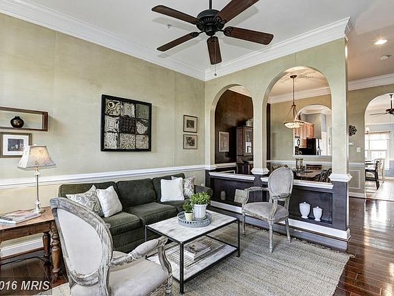 Gorgeous 3 BR/3.5 BA Parkwood TH. 3 fin levels, open floor plan,10 ft ceilings, dark hardwood flrs, crown molding, archways, plantation shutters, designer paint. Gourmet Kitchen w/ island/breakfast bar. Formal DR & LR. UL laundry. Owner''s Suite w/ high ceilings, WIC, spa BA. LL w/ Rec Rm, gas FP, FB & Den/Office. Fenced yard w/ patio. Detached 2-car garage. Walk to shops. Across from green space.