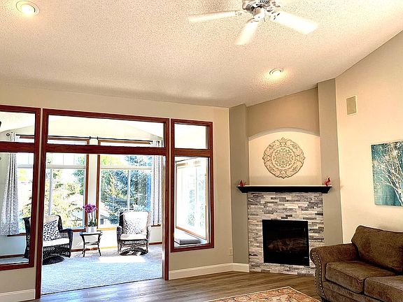 End unit on quiet, dead-end street with beautiful views surrounding you at all times. This spacious unit has full main floor living. There is a very cozy loft area off the main level that includes a sitting area/office area, and a second master bedroom with WIC and private bath. The basement includes a cozy family room with gas fireplace, perfect for family night or entertaining. There is one bedroom and one non conforming bedroom/office with a WIC. The basement is complete with a full bathroom and plenty of storage space. Custom finishes throughout. A gorgeous four season porch integrated with the living room with spectacular views. All new flooring and paint thru out-LVP, carpet, and wall plank added. Beautiful updated fireplace on main level.