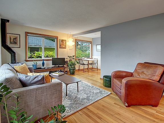 Adorable & Affordable West Seattle bungalow. Cozy around the warm gas fireplace & enjoy the natural light, hardwood floors, & custom woodwork. Don't let the square footage fool you. Roomy kitchen w/ sep. dining area. Detached 2 car garage adds 400 s.f. for storage, pkng, & potential to add a loft/art space. Enjoy sunrise & morning coffee on front porch nestled above a quiet residential street. Backyard perfect for pets & parties. Close to beaches, dog park, coffee shops, restaurants & SSCC.