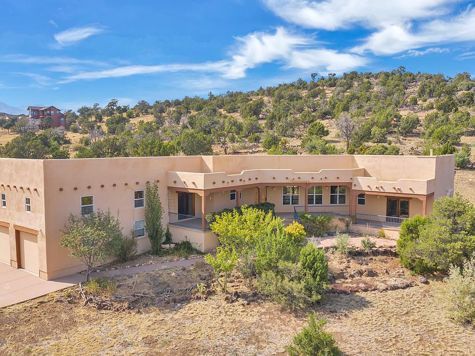 BACKS FOREST SERVICE ON 2 SIDES. This unique, adobe style home on 2.39 acres has gorgeous views and privacy. It comes with a 3 car garage, loads of natural light and custom Kiva fireplaces in living room, master bedroom and back porch. Recent upgrades include new roof in 2013, resurfacing of stucco and exterior paint and an epoxy painted floor in garage. Living room has also recently been painted. Exterior of the home has two lovely decks to enjoy the surrounding tranquility. Driveway is south facing for easy maintenance in the winter. There is a storage shed and an enclosed area for your trash cans. Please ask your agent to share the list of improvements for more details. This home is priced to sell. Make an appointment to see it today!
