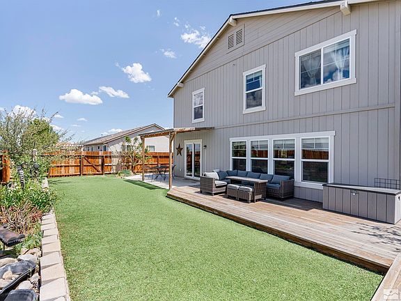 Welcome, to this charming home nestled in the heart of North valleys! From the moment you step inside, the warm tones throughout give you a sense of welcoming! The heart of the home is the open kitchen featuring an abundance of cabinetry, granite countertops, a breakfast bar, GE appliances, an eat-in nook and an additional custom built cabinet space with a butcher block countertop. Open to the living room and adjacent to the formal dining room; it is perfectly situated for entertaining., The desirable floor plan features three oversized bedrooms, plus a loft. The primary bedroom features an en-suite with a dual vanity, shower/tub combo, large walk-in closet and a custom barn door. Enjoy your pristine backyard year-round with xeriscape artificial turf, raised garden beds, pergola, and a wrap-around deck to soak in those mountain and valley views! Centrally located near the bus line, shopping, restaurants, and more!