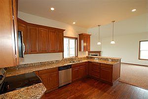 Hansen Construction is proud to introduce the Hawthorne to Fox Hills gated community. This large rambler features a 988± sf side load 3 car garage, hardwood floors through the entry, formal dining kitchen, tile floors in each of the 3 baths and laundry rooms, 9 ceilings with vaults in the great room, solid wood cabinets w/matching trim and crown molding, slab granite counter tops throughout the home with under mount stainless steel kitchen sink, heat pump, private lot w/room for large shop!