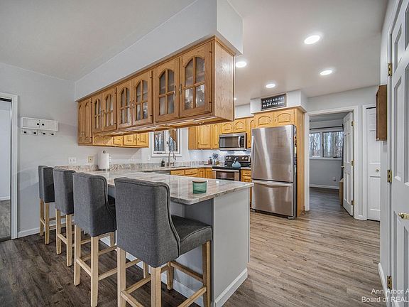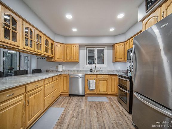 Retreat to Loch Erin. This home gives you all the feels of up-north-cozy in close proximity to the lake-with privileges. You'll find this wooded lot quietly tucked at the end of Kerry Court. Two decks and two balconies overlook nature, while the inside hosts many fresh updates. New flooring throughout in 2019, granite kitchen & bathroom countertops and stainless appliances in 2021, water heater in 2023, and Generac back up power system added in 2020. This home has surprising spacious features, like the workshop area in the basement, passthrough between the garage and home, and additional storage space above the garage, accessible through the upper level of the home. Make sure you stop and appreciate the beauty that surrounds you while looking through the double door wall in the living and dining areas. This property comes with all that Loch Erin has to offer with 13 parks, boat launches, a sandy beach, and even a pickleball court. Don't miss this one!