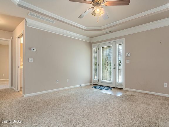 As soon as you discover Anderson Park you will understand why it is a sought-after condominium community. 9005 Sidney Way is a lovely move-in ready, brick condo including a 1 car garage that is ready for its new owners! The beautifully landscaped exterior common area will lead you to the covered front porch. As you enter the front door you will find open interior layout with uninterrupted views from the Living Room to the Sunroom -loaded with natural sun lighting. It is a well-designed home that boasts trey ceilings with gorgeous crown molding in the Living Room, Sunroom, and Primary Bedroom. The Kitchen includes a beautiful tile backsplash, granite countertops, solid wood cabinets, and a pantry closet offering plenty of storage. The generously sized Primary Bedroom includes vaulted ceilings with a walk-in closet, and an En-Suite Bathroom with a walk-in shower. The additional Bedroom is a good size with a nearby hall full Bathroom. Outside the Sunroom door you will find a relaxing fully fenced patio awaiting you to enjoy with family or friends. The outdoor spaces are neatly manicured by the property management so that you can enjoy your free time without the hassle of yard work. Perfect for first time home buyers or those looking to downsize and simplify life. Call now to view this move in ready condominium unit located in Fern Creek, KY.