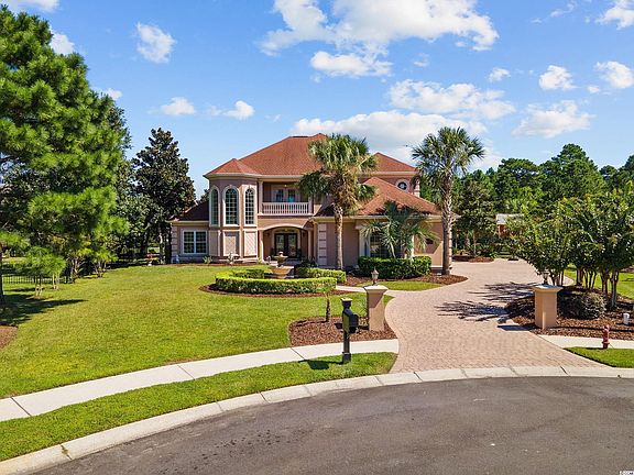 This STUNNING Mediterranean custom built home occupies a class all its own! The moment you drive up you will notice the meticulously maintained mature lush landscaping that sits on .53 acres on a lake lot. Quietly situated on a cul-de-sac, the estate enjoys a secluded aesthetic tucked privately away in the desirable community, Plantation Lakes in Carolina Forest. This one of a kind 2x6 stick built home offers 5 bedrooms and 5-1/2 bathrooms. Trickling water is the sound youll hear from the fountains upon walking up to the home. Enter through the wrought iron double doors and once inside youll find gleaming hardwood, LVP and tile flooring throughout the entire home and distinguished millwork. A huge gourmet kitchen claims the spotlight, ready for culinary excellence with top of the line stainless steel appliances including a Subzero refrigerator, Thermador 6 grill gas cooktop, double ovens, pot filler, two dishwashers, gorgeous white custom solid wood cabinets with plenty of space, large island, granite countertops and walk in pantry complete it. For the holidays enjoy dinners in your formal dining room where there is plenty of room to entertain. When youre ready to relax you can go in the family room and watch all your favorite holiday movies. The living room boasts coffered ceilings and a relaxed elegance in cooperation with the intimacy of its fireplace focal point. Three guest bedrooms all with private bathroom and balcony with water views are well placed on the second floor, along with your laundry. Each bedroom is quite large, particularly youre vast Owners Suite. The Owners Suite has a sitting area and en-suite with his and her sinks, a large bath with a luxurious soaking tub and oversized stand-alone shower. Your huge walk in custom closet is sure to please any woman that loves shoes, clothes and pocketbooks. After a long day step out onto your private balcony break out some bubbly and enjoy the beautiful lake views before retiring to bed. A large fifth bedroom/guest or in-law suite is located on the first floor which includes a kitchenette, private bathroom, washer and dryer. Also on the first floor is an office, media room and craft room. Your beautiful backyard with lakes views has plenty of room should you desire a built in pool. Whether youre looking to sun bathe on your paver sun deck or have a nice cold glass of lemonade underneath your pergola this backyard has it all. There is even a boat dock so you can hop onto your Pontoon boat and ride around the lake in this peaceful subdivision and enjoy the scenic views. An oversized 3-car garage tops it off whether you have lots of kids toys, your own toys or in need of extra storage there is plenty of room! Ideally located close to the beach, shopping, medical, airport, dining & top tier schools. This amenity-rich neighborhood has sidewalks, gym, playground, 3 pools, Tennis Courts. Basketball Court, amenity center with gym or where you can host parties that together indulge a resort-inspired lifestyle!