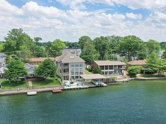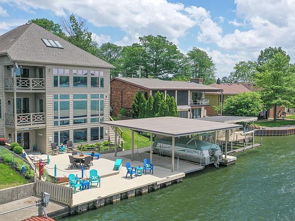 Million dollar view! This IMMACULATE updated residence at Indian Lake is everything you've ever wanted in a lake home. Nestled in a no-wake zone on Lakeridge Island with stunning views and gorgeous sunsets, this beauty features 4 bedrooms, 3 full baths, and 2 half baths. You'll love the full wall of NEW giant windows soaring up to the ceiling that invites in plenty of natural light and shows off the stunning open water views. New carpet, tiling, and hardwood flooring throughout. Entertaining is easy in the enormous great room, separate dining room, oversized wet bar, and on the beautifully landscaped patio by the water's edge. The updated kitchen features granite counter tops, new stainless steel appliances, double convection oven, and balcony overlooking the lake! Upstairs you can relax in the spacious waterfront master suite featuring a private balcony and updated en suite bathroom with his/her vanities and walk-in closet. The office/den could be converted into a 5th bedroom! There is extensive storage space with several attics throughout and a large storage room on the first floor. The oversized three car garage is perfect for parking a golf cart and features an additional door opening up to the fenced-in back yard, making it convenient to store all of your lake toys. The steel boat dock built in 2014 features double electric lifts. Residence also includes two furnaces, thermostats on three floors, two water softeners for continuous recycling, and central vac. Selling in 'as is' condition. Make this your new lake home today!