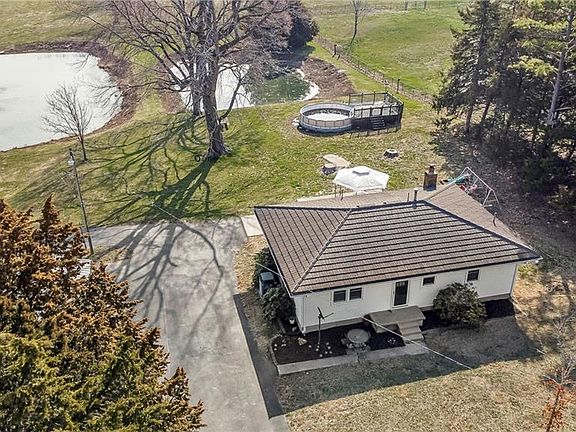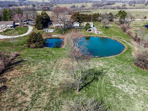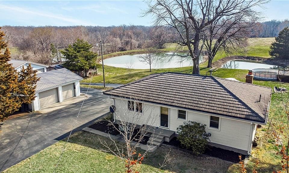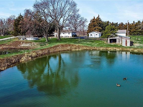 Almost 9 acres in Liberty! Included 1/2 acre pond, 2 car detached garage w/carport & 3 car detached shop (both new metal roofs, new doors & air compressor), barn, above ground pool and deck, 2 RV hook ups, volleyball court area w/lights, patio & canopy and deer stand. 2 bedroom 1 bath home home with recently exposed hardwood floors throughout. Updated kitchen with quartz countertops, big island & newer appliances. Remodeled bath. Metal roof has 50 year transferable warranty & maintenance free siding. Newer HVAC. Mo City school district with option to go to Liberty (SD provides transportation) or Excelsior & Orrick (provide your own transportation).