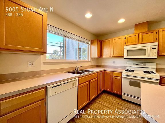 This townhouse is a gem, offering a 3bd/2.5ba layout, attached garage, in-home laundry, and three levels of comfortable living. The ground floor features a bedroom, large closet, and full bathroom. Upstairs, a spacious living room with a fireplace leads to a charming kitchen with gas stove, dishwasher, island, and ample storage space in classic wooden cabinetry. The upper floor boasts two sizeable bedrooms, with the master bedroom benefiting two closets. And enjoy all the seasons on a private balcony looking out to the quaint neighborhood! Conveniently located near the bus line to downtown Seattle and close to restaurants and shops on Aurora, this townhouse is the epitome of Seattle living! 12 Month Lease Available Tenants responsible for all utilities Application: $45 per person/adult Refundable Security Deposit: $2895 Pet possible with prior approval and additional (per pet) - $30 pet application fee - $300 refundable deposit and $35 monthly pet rent - No aggressive breeds and 2 pets maximum! Renter's legal liability insurance is required and part of Benefit Package ($30 monthly). If qualifying legal liability insurance is purchased by tenant separately and proved, Benefit package is reduced to $15 monthly. Professionally managed by: Real Property Associates, Inc. *In-person Tour Only Please visit our company site at rentseattle.com for accurate information regarding unit pricing and availability Great Location Great Natural Lighting Large Closets Lots Of Windows Off Street Parking Included! Pet Friendly Plenty Of Storage Spacious Townhouse Washer/Dryer