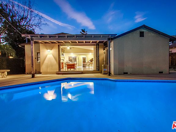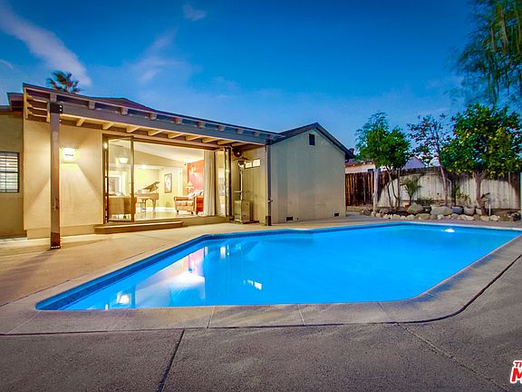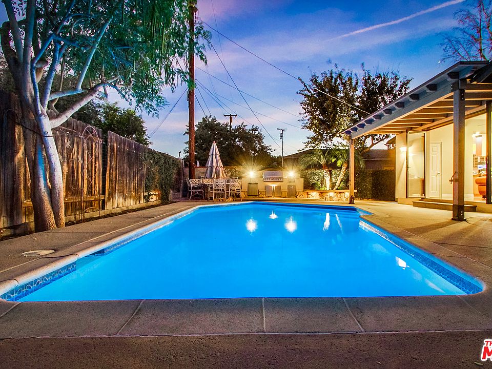 Gorgeous 3 bedroom 2 bath, single story pool home in mint condition. Walk into a spacious living room w/raised ceiling and open floor plan that perfectly blends the indoor/outdoor living space for entertaining w/family and friends. The accordion glass doors w/remote controlled curtain opens to an outdoor experience w/ an in-ground pool, covered patio, built-in barbecue w/stainless steel appliances, serene privacy and relaxation. The charm starts with the beautiful front door, gleaming wood flooring, gourmet kitchen, beautiful wood cabinetry, granite countertops, stainless steel appliances & more. The home has a true master suite and bathroom w/etched glass shower doors, waterfall tub, built in TV. Add'l amenities include: recessed lighting, plantation shutters * prewired for security cameras & surround sound throughout entire house * heated bathroom floors * newer AC unit * central vac * double pane windows * updated electrical * newer pool equipment and more!