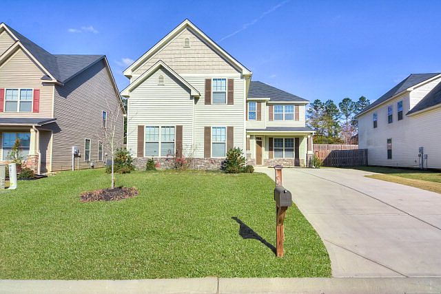 Well maintained home in heart of Grovetown with courtyard entry garage and eat in kitchen with granite countertops, tile backsplash, breakfast bar and stained cabinets, oversized pantry and stainless steel Frigidaire kitchen appliances. Soaring 2 Story ceiling in the great room with electric fireplace. Owner suite on main level with bay window, owner bath with garden tub, his and her sinks and separate shower, spacious walk in closet in owner bath. Four Bedrooms and two full baths upstairs, 5th bedroom is bonus room would make an awesome man cave space. Covered front and rear porches. Four sides sod and sprinkler system, bronze finish lighting, hardware and plumbing throughout, iron spindles on staircase...this home is a must see. Seller installed a $7,000 water purification system, which softens and purifies the water, 2-10 Home warranty is transferable.