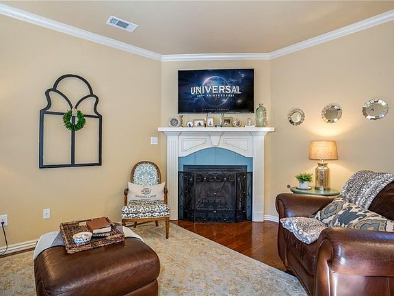 Great floor plan w/ master and one bdrm downstairs, two upstairs with full bath, gas fireplace, wood floors, eat in kitchen, granite counters, formal dining, pantry, wrought iron staircase, whirlpool tub in master suite, covered patio, low E windows, cellulose insulation in walls and attic