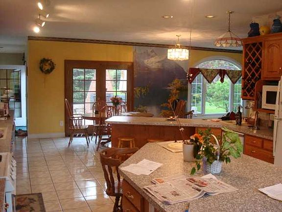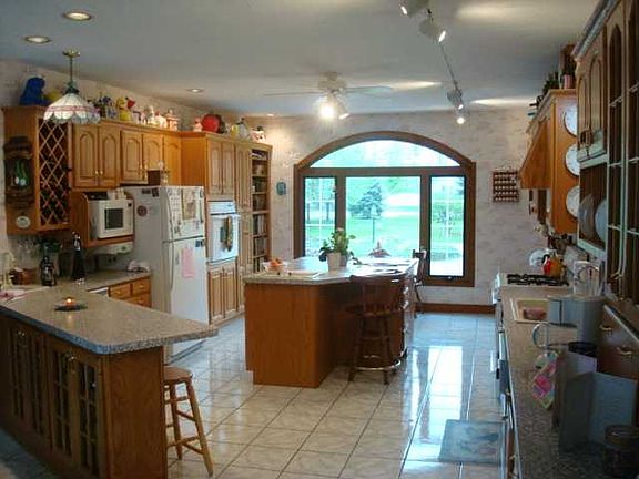 Beautiful custom built home w/private, quiet back yard overlooking 2 acres & pond.(The pond is 2 smaller hand made ponds connected by a stream, Not for swimming) Open concept, updated kitchen & bathrooms, tons of natural light, huge kitchen w/ more than enough cabinet space., Double gas fireplace inside, wood burning fireplace on outside brick patio. Circular brick driveway. Truly one of a kind.