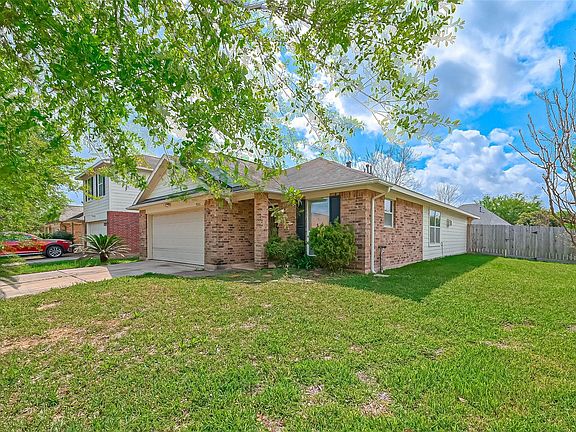 Desirable home located on a corner lot in Durham Park which is zoned to sought after Pasadena ISD. This rancher was built by Beazer and has lots of nice features. The spacious family room hosts a corner gas fireplace allowing long walls for furniture placement and displaying your artwork. Flooring is a light oak color laminate wood which gives a cozy feel when you add your rugs. This room allows entrance to your covered back patio and fenced yard. The entrance is tile with a glass beveled door which leads the way on to the dining and kitchen area. You're greeted by a V-shaped breakfast bar which offers storage on the kitchen side. This kitchen features recessed lighting, tile backsplash and black appliances. Down the hallway you will find your inside utility room and hallway leads to the bedrooms. All bedrooms offer a ceiling fan and wood flooring. Oversized primary offers an ensuite with a walk in closet, sink with vanity and tub with shower.
