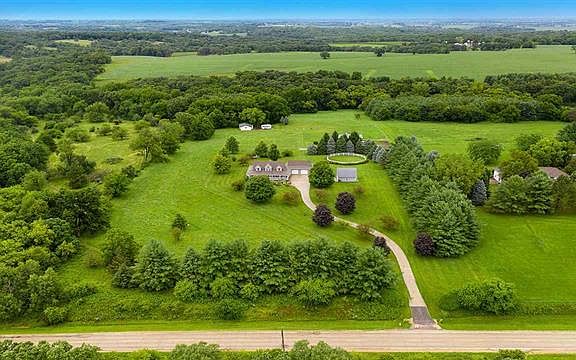 One of Kind Horse Property for sale in Lena! 14.13 Acres with roughly 8 acres of pasture and the balance wooded, located 1 mile from town & the highly regarded Lena School District. 550 feet of concrete driveway leads you to this custom built, colonial style home has over 3,800 sq ft of finished living space. 3 Bedrooms, 2 full baths & 2 half baths. Soaring ceilings in the living room with expansive windows showcasing gorgeous country views. Large kitchen with custom cabinets, granite counters & an eat in area. Main floor master boasts a luxurious updated bathroom with a large tub & tile shower. The property was set up for true horse enthusiasts, with 2 car attached & 2 car detached garages, 8 fenced acres with copper wire-infused ElectroBraid fencing, 30x50 barn, automatic waterers, round pen & additional side by side garages with cement floor. An added bonus is the creek at the back of the property.