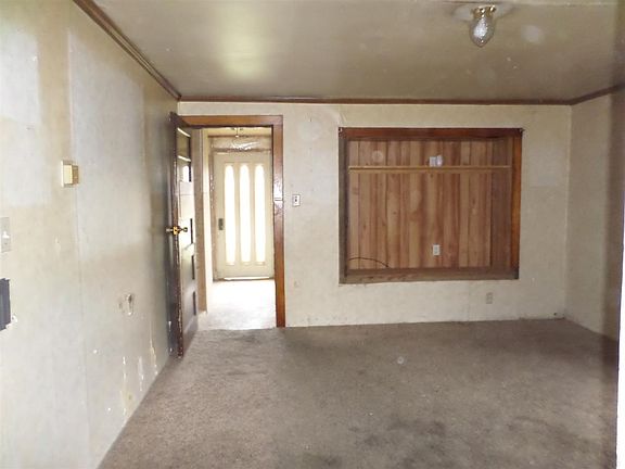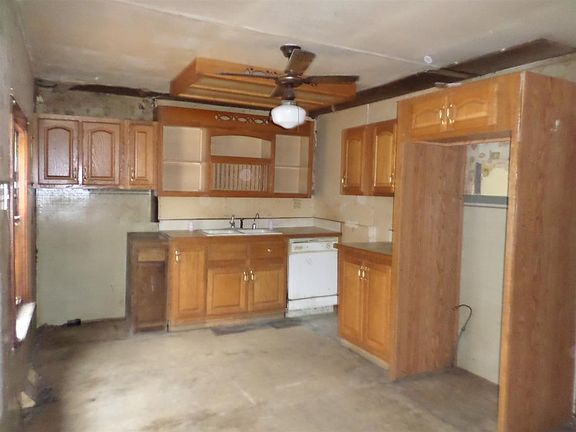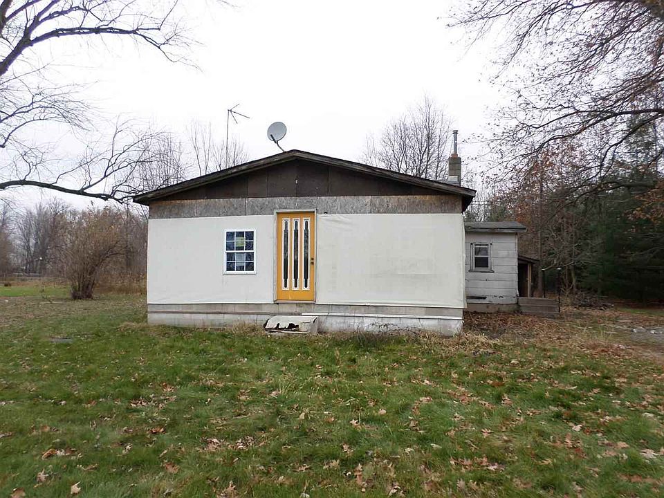 Nice chance to have a large lot (almost an acre) in the country. Nice private setting. Ranch style home features a living room kitchen full bath and 2 bedrooms. The front addition can be finished your way for more living space. Unfinished basement plus 2 storage sheds. Needs work.