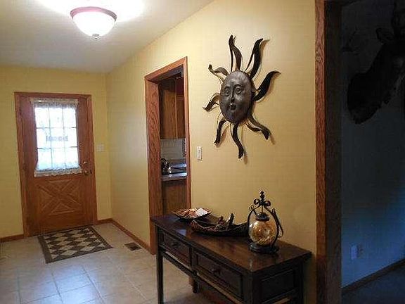 Only a job transfer brings this pristine brick ranch to the market! Features spacious eat in kitchen w/breakfast bar,3 bedrooms, 2 full baths. First floor laundry, full basement, deep 2.5 car garage w/extra parking pad adjacent, great for that boat or RV. Garden shed, large cement patio w/knee wall & fire pit. All this nestled on nearly 1 acre lot framed by towering pines & mature trees. Elementary school is 1/4 mile away & a short drive to I-94.1 Year Home Warranty Included!