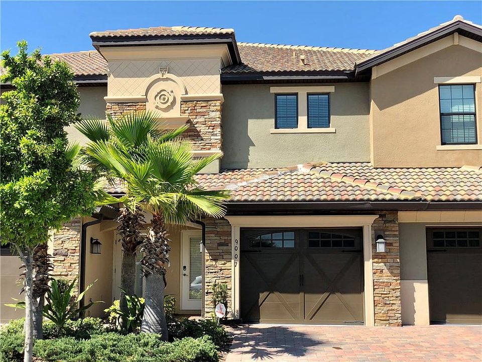 MOTIVATED SELLER- Fully Furnished stunning 3 Bedrooms / 2 Bathroom townhouse with garage and no immediate rear neighbors. Zoned for seasonal and long term rentals, they can be rented for 30 days, or 12 months. This open concept floor-plan is easy to fall in love with! Kitchen appliances are all stainless steal, 42 inch cabinet with beautiful countertops. Full size washer and dryer, tile in common areas and carpet in the bedrooms. Home has been so well maintained. The Oasis clubhouse is Championsgate's multi-million dollar clubhouse and resort style pool complex. It boasts a full service restaurant and bar, sundry shop, 26 seat movie theater, arcade, business center, yoga room, Camp Oasis, exercise room and gym. The spacious outside deck features a large circular pool, an exciting kiddie splash park, over 500 ft lazy river, tiki bar, two sand volleyball courts and 22 air conditioned cabanas that are available for daily rentals. Champions Club is the perfect choice for families looking for on-site amenities. Located just a few miles from Disney World!