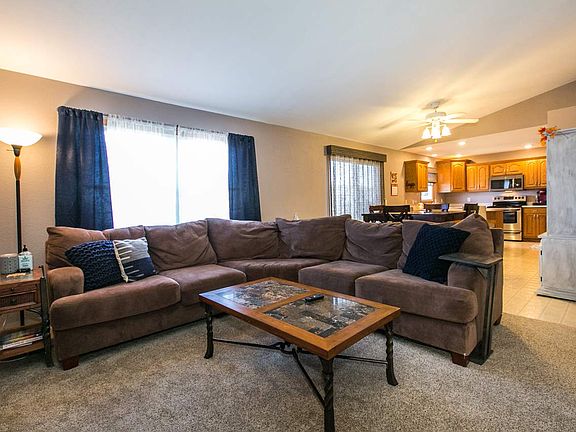 NICELY UPDATED walkout ranch home on a quiet street! This 5 bedroom, 3 bathroom, 2 Car garage home offers an open floor plan, oak cabinets in kitchen with snack bar, large pantry, vaulted ceiling in living room, master suite with bathroom, some newer flooring, lower level family room, newer deck and patio in 2017, shed, level yard and more!! MUST SEE!!