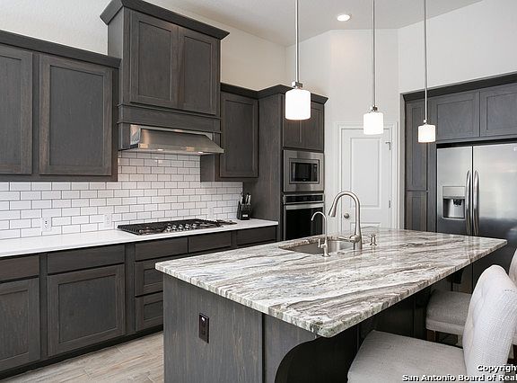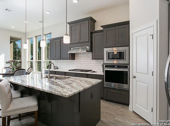 Practically NEW one-story home in Front Gate features open floor plan w/spacious living area, high ceilings, pristine, upgraded flooring, separate office space & beautiful backyard perfect for entertaining guests! Gourmet kitchen features solid countertops, custom cabinets, walk-in pantry, breakfast bar & BRAND NEW appliances. Home also includes new tankless water heater, new water softener, new washer/dryer, built-in security system & upgraded electronic doorbell. Exemplary rated Boerne ISD! WELCOME HOME!