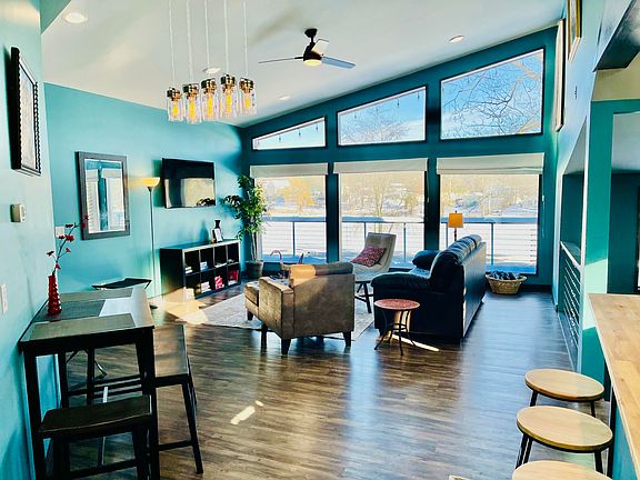2 bedroom/2 bath home on Huron River leading to Ore Lake. Walk out lower level. Concrete countertops. RO system. Large window overlooking water. Heated floors on lower level. Balcony. Stamped concrete patio. Private dock. Part of Huron River Chain of Lakes.