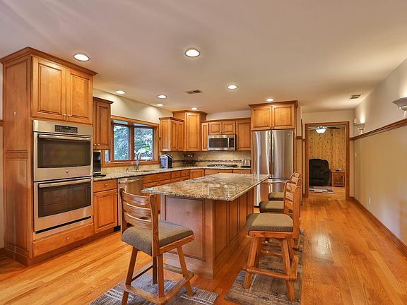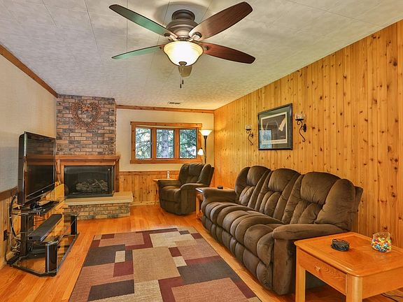 Beautiful updated RANCH with mostly finished basement on .98 acres! This lovely home will sell fast with all it's desirable features. Wrap around front porch. Gorgeous kitchen with eat-in area, pantries, granite countertops, upgraded stainless steel appliances (2014), bow window, bar stools, and slider to back deck. 3 bedrooms on main level and 6 panel doors. Hardwood refinished 2014. Master bedroom has walk-in closet with organizer and slider to porch. Living room has knotty pine paneling and a 2-sided fireplace. Basement is very functional (partially finished) with Buck Stove in rec room and door/walk-out to back yard. Also a 3/4 bath, laundry area, and a room perfect for storage or an office. Clean burning hot water heat throughout home. Fenced yard area features a hot tub. Don't forget about the attached garage with furnace, and cabinetry/storage and refrigerator on W side can stay. 2015 septic drained and main lines cleaned. Home warranty included.