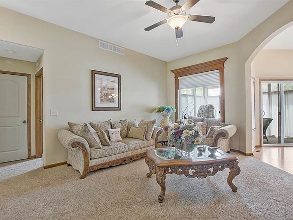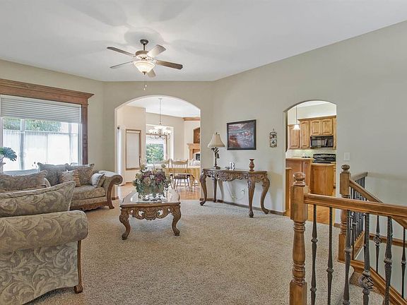 Split ranch plan in Fox Ridge. Open Floor Plan with large kitchen and hearth room with hardwood flooring and FP in Hearth. Sun room located off kitchen and hearth room adds nice additional living space. Formal living room with 11' Ceilings is 17 x 17.6. There are 2 nice sized bedrooms and full bath rooms just off the kitchen and Hearth. The master has a nice master bathroom with tile floor, double sinks, a Jacuzzi tub, separate shower & walk in closet. Basement is all finished and very open large family room with FP #2 and view-out windows, a game area and nice wet bar. 2 more large bedrooms, bathroom #3. Additional storage and a walk out, walk up pit, and a large patio area in the east facing backyard. 3 car garage, well, sprinkler system, no specials and in Maize Schools and cul de sac lot. Make this a great family home in a great neighborhood.