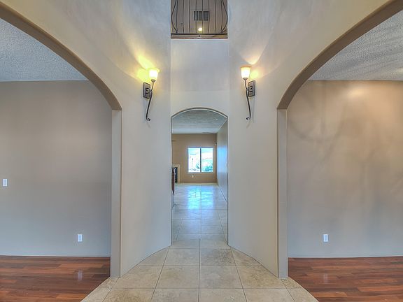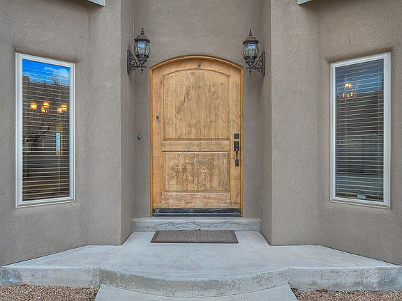 Custom stunner in Vineyard Estates situated on a premium lot! Complete with Brazilian cherry wood floors, kitchen with knotty alder custom cabinets, granite counters and breakfast nook, formal dining and formal living areas with gorgeous views of Sandias! Guest bedroom downstairs, full bath & office. Master bedroom suite with fireplace & sitting room or office, includes 2 separate sinks, jetted tub & glass shower plus spacious walk-in closets. 3 over sized bedrooms plus media room (or 4th bedroom) w/ balcony w/ views of the mountains and city! Laundry room up complete w/custom cabinets. Cabinets and doors are knotty alder. Amenities abound: built-in vac system, fans, skylights, 3 car garage w/epoxy floors. Close to shopping, restaurants & schools