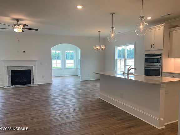 Located in the highly desirable Scotts Hill area, Scotts Hill Village is a natural gas community with direct access to I-40 and 17N for an easy commute to the area beaches and all of the best shopping and dining. The Nantahala is a 2-story home with 4 bedrooms, 3.5 baths plus Home Office, Sunroom and Loft area. First floor Primary bedroom has tray ceiling, walk-in tile shower, linen closet and spacious walk-in closet. Upstairs are 3 bedrooms, 2 full baths and large Loft Area. Family Room with fireplace overlooks Kitchen and Dining area. Kitchen features Quartz counters, large island, gourmet layout with gas range, wall mounted microwave and oven, white Farmhouse sink, under cabinet lighting and Pantry. First floor Home Office with French doors for privacy. Light filled Sunroom has panoramic view of back yard and 13 acres of protected conservation area. Outside enjoy fully sodded front & back yards with irrigation.