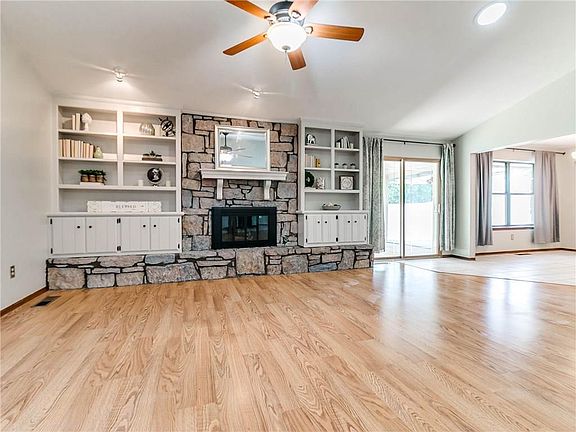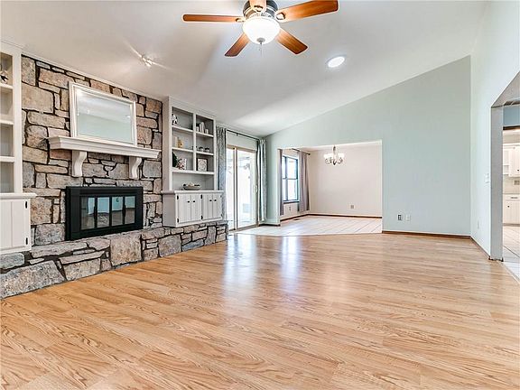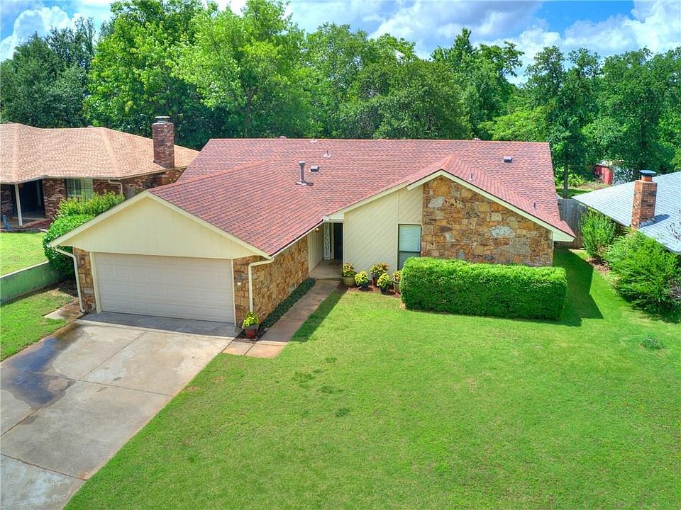 Beautiful Stone Home near Tinker AFB and Carl Albert Schools. Open Concept floor plan! The Kitchen is freshly painted which accentuates the stainless-steel appliances. Living room with new wood laminate flooring and tile through out. Book cases flank a Stone Gas Log Fire Place to enhance family get together. All Bedrooms have New Carpet!!! Master Suite includes His and Hers Closets. Inside utility room with plenty of storage! Large back yard with open deck for cook outs with the extended family. Shop equipped with electricity for your Man Cave or She Shed! Extras: HVAC 2018, New Carpet in Bedrooms, Fresh Paint, Storm Shelter, Roof 4 yrs old