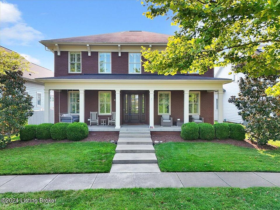 Discover the refined elegance of this magnificent five-bedroom, four-and-a-half-bath brick residence, nestled in prestigious Norton Commons. The welcoming front porch invites you to savor tranquil evenings while enjoying breathtaking sunsets. Upon entering the meticulous attention to detail and extensive custom craftsmanship are immediately evident in the great room which boasts a coffered ceiling. Bookshelves elegantly frame the fireplace which exudes warmth and grandeur. The gourmet kitchen awaits the culinary aficionado with double ovens, exquisite cabinetry & features an expansive island with premium countertops with dual beverage drawers. Ideal for both sophisticated cooking and stylish entertaining. The charming dining area seamlessly complements your hosting needs. On the first floor, the primary suite offers a haven of luxury with its spacious layout and elegant finishes. This exceptional retreat features a lavish en-suite bath and generous walk-in closet. Complementing this exquisite interior, an outstanding second covered porch provides a perfect setting for relaxation overlooking a fully enclosed yard and a maintenance-free turf lawn. First floor laundry adjacent to the oversized two-car garage with EV charging capabilities for eco-friendly living. As you ascend to the second floor, you'll discover a spacious loft area, alongside three well-appointed bedrooms. One bedroom features an en-suite bath and a walk-in closet, while the other two share a thoughtfully designed Jack N' Jill bath. A discreet office offers versatile functionality. The finished lower level extends your living space with a spacious family room complete with a wet bar. It also includes a fifth bedroom with an egress window and a full bath. Generous closet space and an unfinished storage area further enhance this expansive home. Prime Location just blocks from the community pool(s), dog park, and playground, and YMCA, this home is positioned on a quiet street for added tranquility. This distinguished home harmoniously melds classic charm with modern luxury, offering an idyllic retreat. Enjoy the serene ambiance of a peaceful street while remaining conveniently close to the vibrant activity of the neighborhood's town center. Here you'll find a diverse array of restaurants, shops, and an amphitheater, all contributing to a tight-knit community where everyone feels at home. Schedule your private viewing today and experience the luxury & elegance of this exceptional home where sophistication meets comfort.