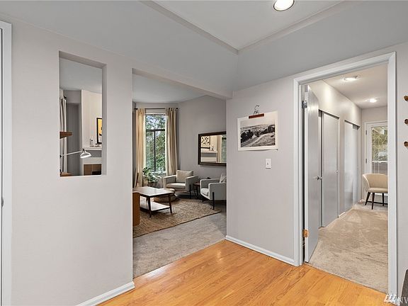 Location at it's Prime. Minutes from Microsoft campus, parks, downtown Redmond and freeways. This no rental cap unit is layed out perfectly with bedrooms/bathrooms separated by the main living areas. The vaulted ceilings and picturesque window allow for this top floor unit to be filled with light. On a clear winter day enjoy the peak-a-boo view of Mount Rainier. Storage in this unit is well thought out and bonus is the private garage. Amenities include a clubhouse, workout room, jacuzzi and pool. Seller procured inspection available.