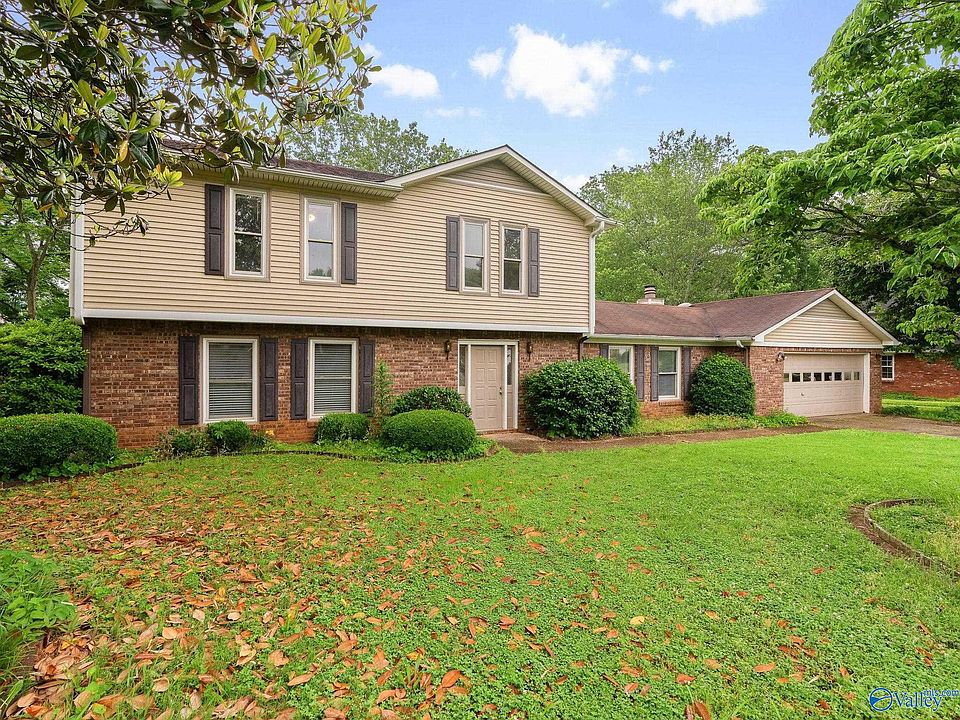 MINUTES TO VALLEY HILL COUNTRY CLUB! Located in the heart of South Huntsville, this 4 bedroom, 2.5 bathroom home sits on over 0.3 acres. Endless possibilities for outdoor entertaining with a beautiful flat lot and oversized back yard. Fabulous floor plan with two living areas downstairs, dining area and bay windows with eat-in kitchen. Vaulted ceiling in oversized living room with wood burning fire place. Use second living space as a bonus/playroom or convert dining area to a work from home office. Freshly painted kitchen cabinets, family room and downstairs trim (2023)! New tile in powder bath (2020). Two-car garage! Don't miss this one! Sold As-is.