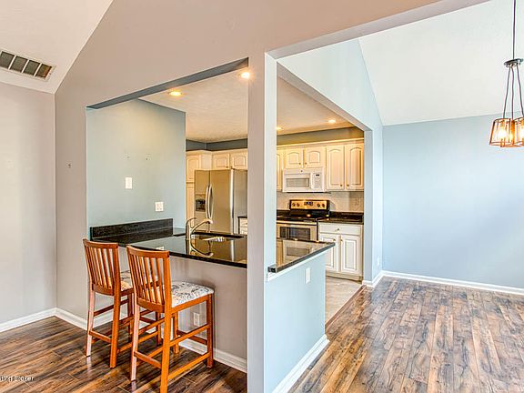 Lovely brick ranch in Holly Springs Village. Newly updated kitchen with granite counters, ceramic tile floors, stainless range and refrigerator. Dining room has a vaulted ceiling, new lighting fixture, and large, pretty window. It is open to the greatroom which also has a vaulted ceiling, gas fireplace and breakfast bar. Floors throughout are newer wood laminate. The master is a nice size with walk in closet and large master bath. All newer paint throughout. 2 car garage has pull down stairs for extra storage. The backyard is fenced and has a 14x16 deck. Well maintained yard as well as the house. Super nice neighbors and quiet street, convenient location. 2 year old HVAC. Roof under 5 years.