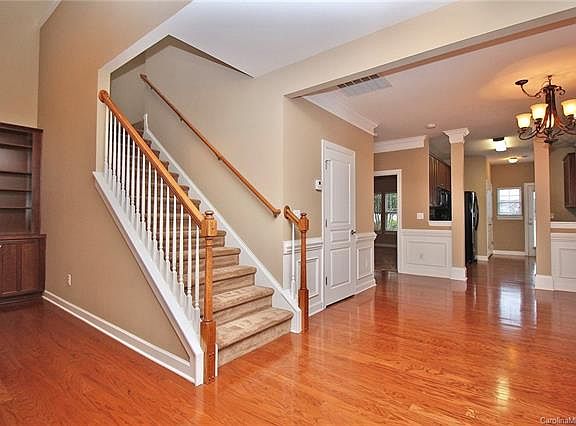 Don't miss out on the amazing opportunity to own this fantastic 3 bedroom, 2.5 bath, 2-story townhouse in the sought after area of Indian Trail. Upon entering you will be wowed by the gleaming hardwood floors, detailed wainscoting found in the formal dining area and the neutral tones painted throughout. The main level also offers a spacious master bedroom and matching en suite that includes his and her sinks, an inviting garden tub and a roomy walk-in closet. Upstairs you will find 2 additional generous sized bedrooms, a second full bathroom and a loft area perfect for sleep or play. Come and view all that this sun filled sanctuary has to offer.