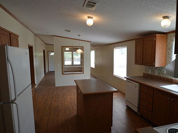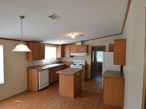 Custom ordered double-wide with covered porch. Property is fenced with privacy fence and chain link in back. Open floor plan with large great room open kitchen dining area. Kitchen has abundance of cabinets. Large utility room with folding counter top. Freshly Painted...move in ready!!!
