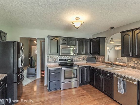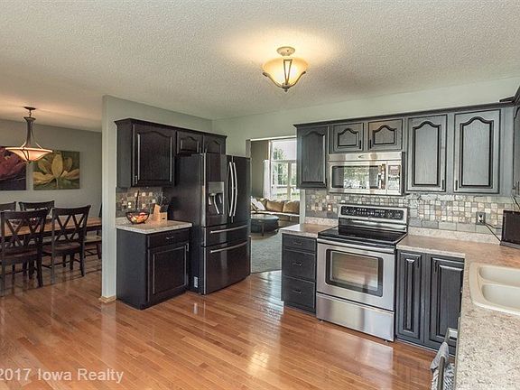 Remarkable updated 4 bedroom home in Johnston w/over 1/2 an acre lot that backs to trees for privacy. The main floor offers a vaulted living room, formal dining room w/hardwood floors that flow into the kitchen and great room. Stainless steel appliances and lots of natural sunlight with an entrance to the oversized deck from the great room. 3 bedrooms upstairs including a master w/private bath and balcony overlooking a beautiful yard with a garden house. 4th bedroom is in the finished lower level that also includes a family room, game area, a built-in desk and a 3/4 bath. A home well cared for with style and affordability and won't last long.