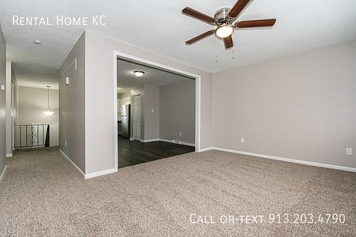 LOTS of Space! You'll love the neutral colors, bright white trim, hardwood-look vinyl plank flooring in the kitchen, dining, baths, and lower level, and brand new carpet in the living room, hall and upper bedrooms. The main level includes kitchen, dining room, large living room, good size main bedroom (with double closets), 2nd bedroom, and hall bath. The lower level has the 2nd full bath, 3rd bedroom (with big walk-in closet), family room with decorative fireplace, and laundry room, plus extra long single car garage, and plenty of storage. Located near downtown Overland Park.) SHOWING STATUS: Vacant AVAILABLE: Now LEASE START: Within 30 days LEASE TERM: Lease ending in June, 12 month extensions TENANTS: No more than 2 Non-related adults PET POLICY: Up to 2, under 50 lbs, over 1 year old, non-aggressive breed VEHICLES: No more than 2 BASEMENT: Finished FENCED YARD: No APPLIANCES: Refrigerator provided, not washer and dryer LAWN MAINTENANCE: No provided AMOUNTS DUE - When you decide to lease: $40/adult, non-refundable - At lease signing: Security Deposit (equal to one month rent) and Pet Deposits - At move in: One full month rent and rekey fee QUALIFICATIONS - Pre-tax income (combined for all tenants) over $5,600/mo - Equifax FICO credit score at least 640 - No debts in collection - No non-discharged bankruptcy - No balance due to current landlord or utilities - No prior evictions - No felonies, or violent misdemeanors
