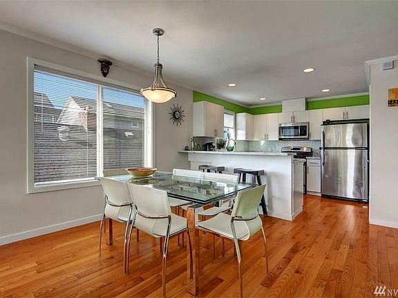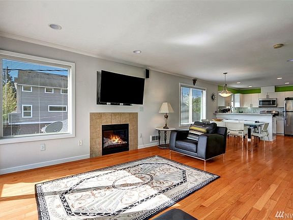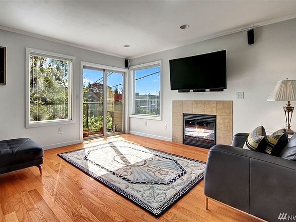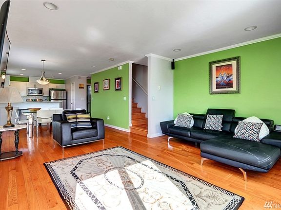 Perched above the street level, this corner-unit offers a terrific territorial view of the neighborhood and a gorgeous view of Mt. Rainier. Its south and east facing windows and doors offer natural light throughout the day. The overall feeling at each level in this home is welcoming and inspiring. Come tour this like-new Westwood Village townhome for yourself! Extras include new dishwasher, quartz countertops, wood floors, garden patio, and new street side entrance. No HOA Dues!