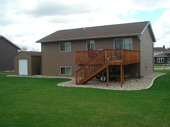 Single Family Home for sale by owner in Watertown, SD 57201. Beautiful 4 bedroom, 2 bath split level home located in family friendly neighborhood in the NE part of Watertown. Main floor consists of 2 bedrooms, 1 full bathroom, kitchen/dining room and living room with open floor plan. Lower level consists of 2 bedrooms, 1 full bathroom, large family room and utility/laundry room. All bedrooms have walk in closets. Cabinets are knotty cherry. Attached 3 stall heated garage. 10 x 12 utility shed sits on concrete pad. 14 x 16 cedar deck overlooking spacious backyard. Appliances included.