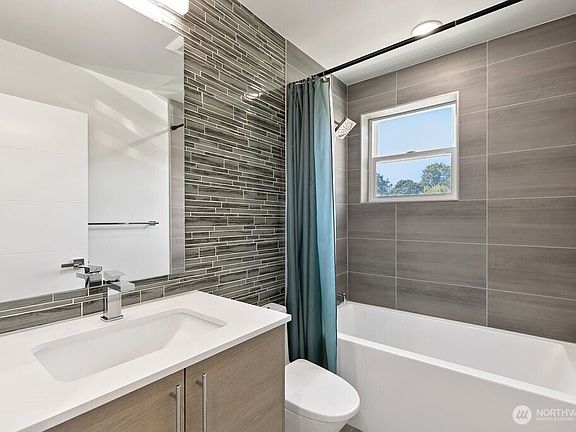 Built in 2022, this stunning end-unit, 3 bed/2 bath townhome has a reserved parking space, steps from the door. It's filled with natural light from the floor-to-ceiling windows, equipped with A/C for those warm days. The first level offers 2 bedrooms, a full bath and a washer and dryer. The main level’s open concept design has modern finishes, stainless steel appliances, gas range, and dining space. The primary suite features a walk-through closet to a ¾ en-suite, walk-in shower and dual vanities. Take in sweeping city and territorial views from your private rooftop deck. With no rental restrictions and a prime Leschi location near I-90, transit, and amenities, this home offers style and versatility. Seller procured inspection available.