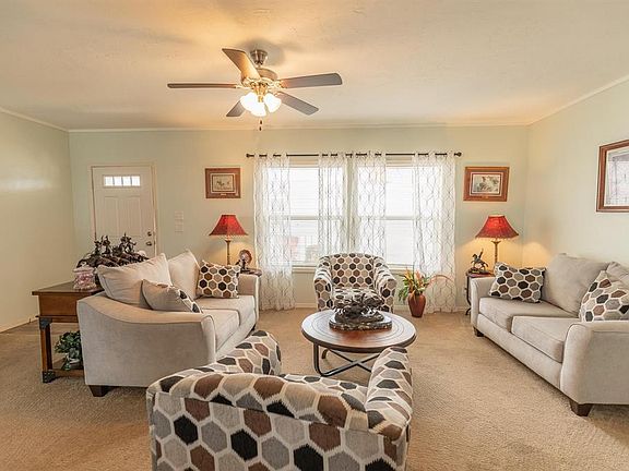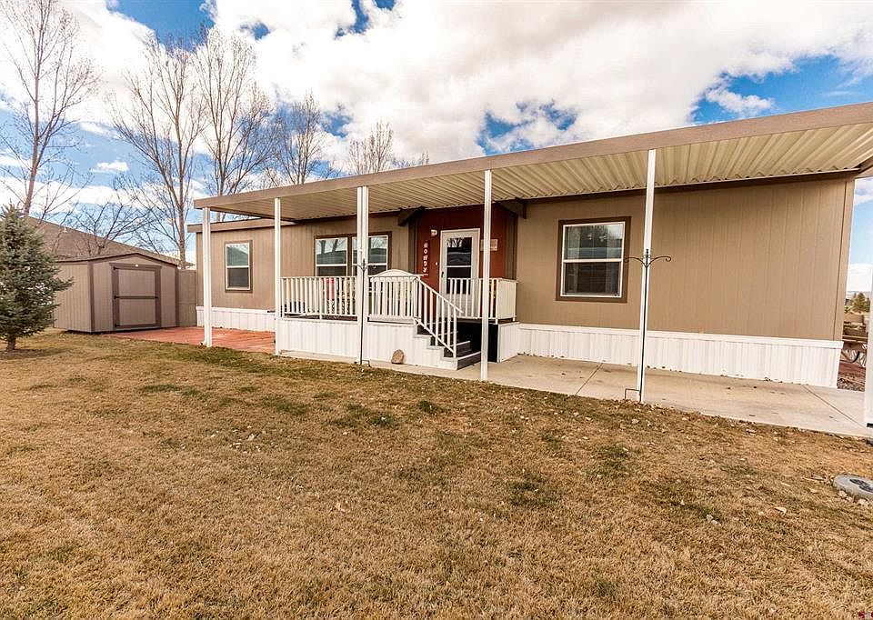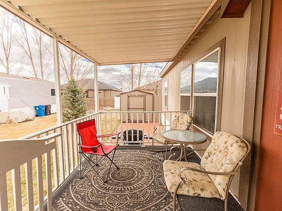 This charming 2018 home in the highly desirable and beautifully maintained Cimarron Creek community features convenient carport parking, as well a nice seating area on the spacious covered front porch. There is also additional usable space for outdoor seating if desired between the home and shed. Inside, you'll find an impeccably kept home with neutral tones, all appliances stay to include a generously sized refrigerator, and a cozy and functional layout. Laundry is just off the kitchen space. On one side of the home is the well appointed and spacious master suite with walk-in closet and a full bathroom ensemble. On the other side a full guest bath and two guest bedrooms. The main living spaces are open to one-another with an easy flow between kitchen, living and dining. Make this your HAPPY, low maintenance home TODAY!
