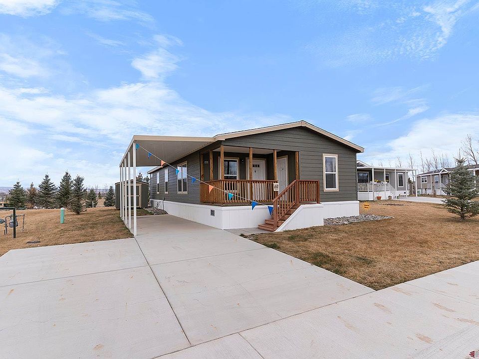 Welcome home to this 2022 doublewide situated in the well established and tidy Cimarron Creek Subdivision. This cozy yet spacious home offers a perfect blend of comfort, convenience, and style, ideal for anyone looking to enjoy the beauty of the Western Slope. Nestled in a peaceful and well-maintained community, this home provides an ideal escape while still being just minutes from Montrose's vibrant downtown, local shops, dining, and recreational spots. Whether you're an outdoor enthusiast or someone who enjoys a quieter lifestyle, Montrose has something for everyone. Featuring an open-concept layout, this 3-bedroom, 2 bathroom manufactured home maximizes space with an intelligently designed floor plan that flows effortlessly from room to room. Enjoy ample storage with built-in cabinets and closet space throughout. The large, light-filled living room is perfect for relaxing and entertaining. There is plenty of room for your furniture and personal touches. The well-appointed kitchen comes with stainless steel appliances, plenty of counter space, and a dining area that invites family meals or gatherings with friends. There is three comfortable bedrooms that provide cozy retreats for relaxation. Home has tape and textured walls. Step outside to enjoy the peaceful surroundings from the large covered porch or patio area, ideal for sipping your morning coffee or enjoying evening sunsets. This home is part of a welcoming manufactured home community with low-maintenance living. Enjoy the benefits of community amenities such as well-kept grounds and nearby services, including grocery stores and healthcare providers. This home offers an affordable living option in a beautiful area, with low property taxes and reasonable community fees, making it a perfect choice for first-time homebuyers, retirees, or anyone looking for a cozy, budget-friendly place to call home. Montrose is a hidden gem on the Western Slope, offering a perfect balance of small-town charm and access to outdoor adventures. From hiking, fishing, and exploring the San Juan Mountains to enjoying local events and festivals, Montrose truly offers something for everyone. Whether you're looking to relax, explore, or start a new chapter in your life, this property provides the perfect setting. Don't miss your opportunity to own this delightful home! Schedule a tour today and make this your next home! Seller will entertain an Owner Carry with a qualified Buyer. Lot Rent is $676.00 per month.