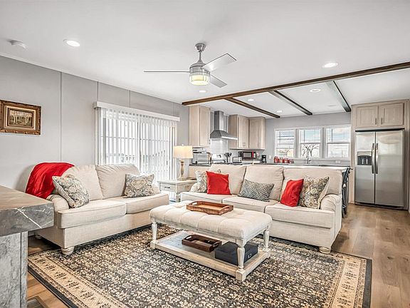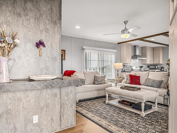 Located in Cimarron Creek MHP, this immaculate 1,178 square foot, single-wide home defies expectations with its thoughtful design and beautiful finishes. Step inside to find a spacious and inviting living area, illuminated by natural light streaming through large windows. The heart of this home is its modern kitchen, boasting a convenient island, sleek stainless-steel appliances, and ample cabinet space, perfect for culinary enthusiasts. Embrace smart living with advanced features like remote-controlled heating and cooling, ensuring your comfort in every season. Other home features include a comfort height toilet, remote controlled fireplace, and a sliding glass door that opens to a charming back deck. The covered front porch, nestled under a graceful awning, provides the perfect spot for morning coffees or evening relaxation with tranquil views of the open arroyo and majestic mountains. Located on the southern side of the park, this home offers not just a place to live, but a lifestyle of comfort, convenience, and open space. Don’t miss this opportunity! Schedule your showing today! Park application approval and background check authorization are required.