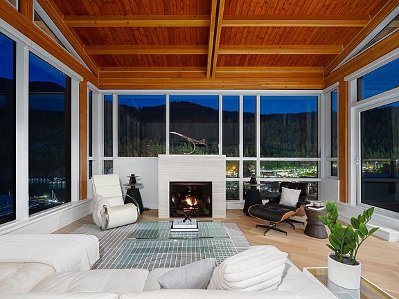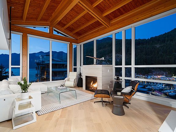 West Coast luxury Penthouse in peaceful Horseshoe Bay. Breathtaking interior details & expansive views meet you in this 2 story elegant residence. No detail has been spared at the Sanctuary, where the interior melds beautifully with the natural surroundings. 14' ceilings featuring stunning wood panels, 4 fireplaces creating a cozy ambiance. Premium Miele appliances, gas range, tall wine fridge w/ 3 temp zones. 3 Patios off the main & rooftop patio, 1,331 SqFt outdoor living w/ hot tub, fireplace & wolf built-in BBQ. Top floor entertainers dream w/wet bar & fridge leading to the rooftop oasis. Building has A/C, gym, Boat House, Chris-Craft Corsair 25 powerboat, 24hr concierge, bike room, kayaks & paddleboards. 5 min to Whytecliff & Golf Course, 15min to Park Royal.