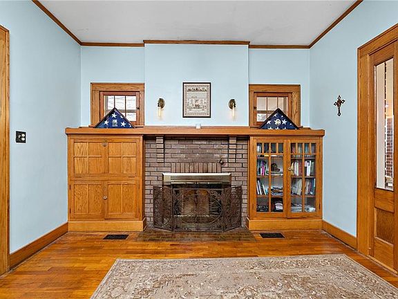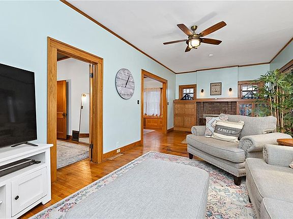 Charming Brick Bungalow (1.5 story) home sits on a sizeable corner lot and has a ton of character. The main floor features a large inviting front porch, open and spacious living room with fireplace, beautiful built-ins and woodwork throughout, hardwood floors, updated kitchen with granite countertops, farmhouse sink, stainless steel appliances, quaint breakfast nook (currently used as a pantry), 2 generous bedrooms and a nicely remodeled full bath. The Second floor features an open and spacious Master Bedroom a w/huge walk-in closet and a half bath. The finished basement includes a large family/rec room and a 2nd full bath with laundry room. There are 2 detached garages, the front one is a 2-car garage with new garage door, new garage opener and a new keypad. The large back garage/workshop (size is approx 22x30) fits 2+ cars, has concrete, electrical, is heated and has a refrigerator that stays. The sellers put insulation and metal siding on the interior of this garage/workshop. It is perfect for car lovers, mechanics, woodworkers or that desirable man cave space. Newer/New features include; newer roof, newer HVAC and newer exterior trim paint, new HWH, some new interior paint and new gutter guards. The Sellers love the home but are being relocated out of state for work. Don’t miss this one, it is a definite Must See!