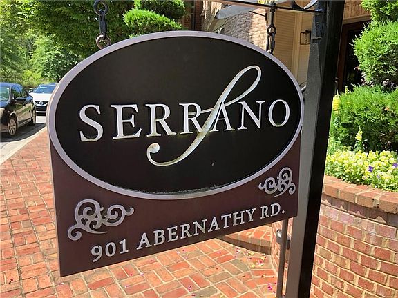 2 Year Lease. No Pets. Highly sought-after Serrano! 2 bedroom, 2 bath condo in Sandy Springs next door to the new Mercedes Headquarters. Hardwood Floors and Granite Counter tops in kitchen & Baths. Covered balcony overlooks swimming pool. Ideal roommate floor plan. Master bathroom has separate tub and shower. Large walk-in closets. Two, side-by-side Covered dedicated parking spaces. Convenient to GA 400 and Marta. go to lobby and Concierge desk to get lockbox.