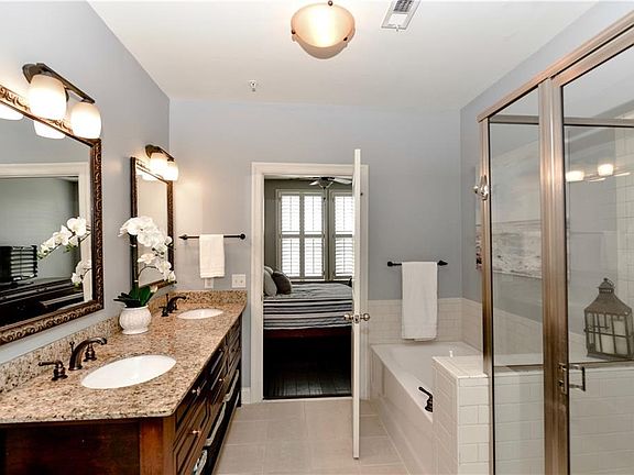 Welcome to your top floor condo at Serrano, overlooking the new Mercedes Benz Headquarters! Walking into the home, you are welcomed with the open concept floorplan. The chefâs kitchen, with granite countertops, stainless steel appliances and detailed tile backsplash flows into the dining and living areas with hardwood floors throughout. The master retreat features a separate garden tub and shower, double vanity and custom closet. Resort style amenities include a pool, clubhouse, gym, his and hers sauna and Google fiber. No detail has been overlooked!