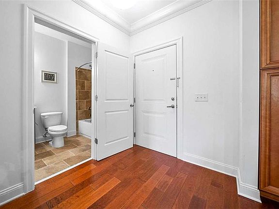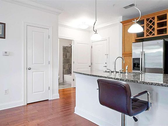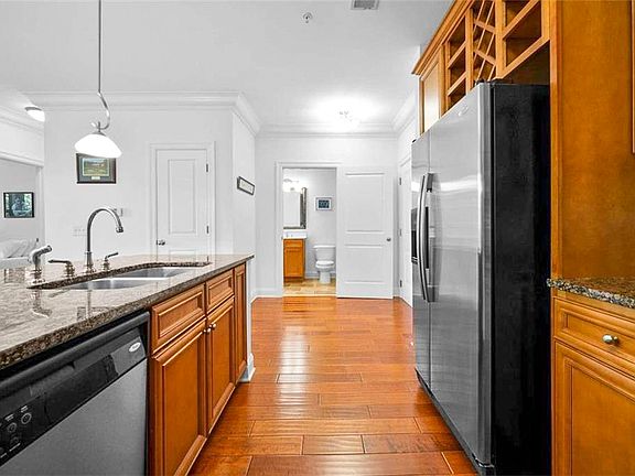 Welcome to Unit 3070 of the full service Serrano Condominiums! This condo is located in front of the new Mercedes Benz headquarters in Sandy Springs right down the street from the new Aria Community. This move in ready home faces the wooded area providing the owner with a private walk out balcony. Beautiful hardwood floors, granite countertops, washer/dryer, breakfast bar and stainless steel appliances are included. Each bedroom is spacious and is paired with a suitable en-suite bath. The master bedroom includes a walk in closet with extra shelving. Other community features include gym, pool, outdoor fireplace and a club room- perfect for hosting parties. This condo is within walking distance to many unique shops located right beneath.